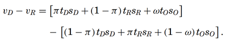 D和R分别为民主党和共和党,VD、RD为两个党派候选人的投票份额,并假定已注册的党派选民为自己党派候选人投票的概率π大于0.5。t代表党派支持者的投票率,s为人口份额,ω为“其他人”给民主党投票的可能性。值得注意的是,在媒体市场的边界,SD≈SR,该方程进行如下改写: