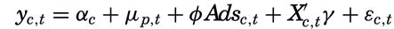 为进一步了解选民党派结构的变化在政治广告对选票份额的影响中产生多大作用,作者构建了一个理论方程来解释,具体形式如下: