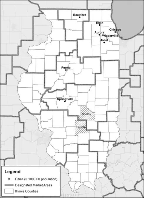 图1 伊利诺斯州的县与媒体市场