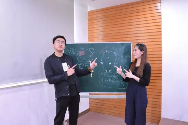 经过了富有趣味的抽奖环节之后,接下来就进入互动环节。同学们和两位嘉宾同心协力,一起在黑板上完成了两幅可爱的画。