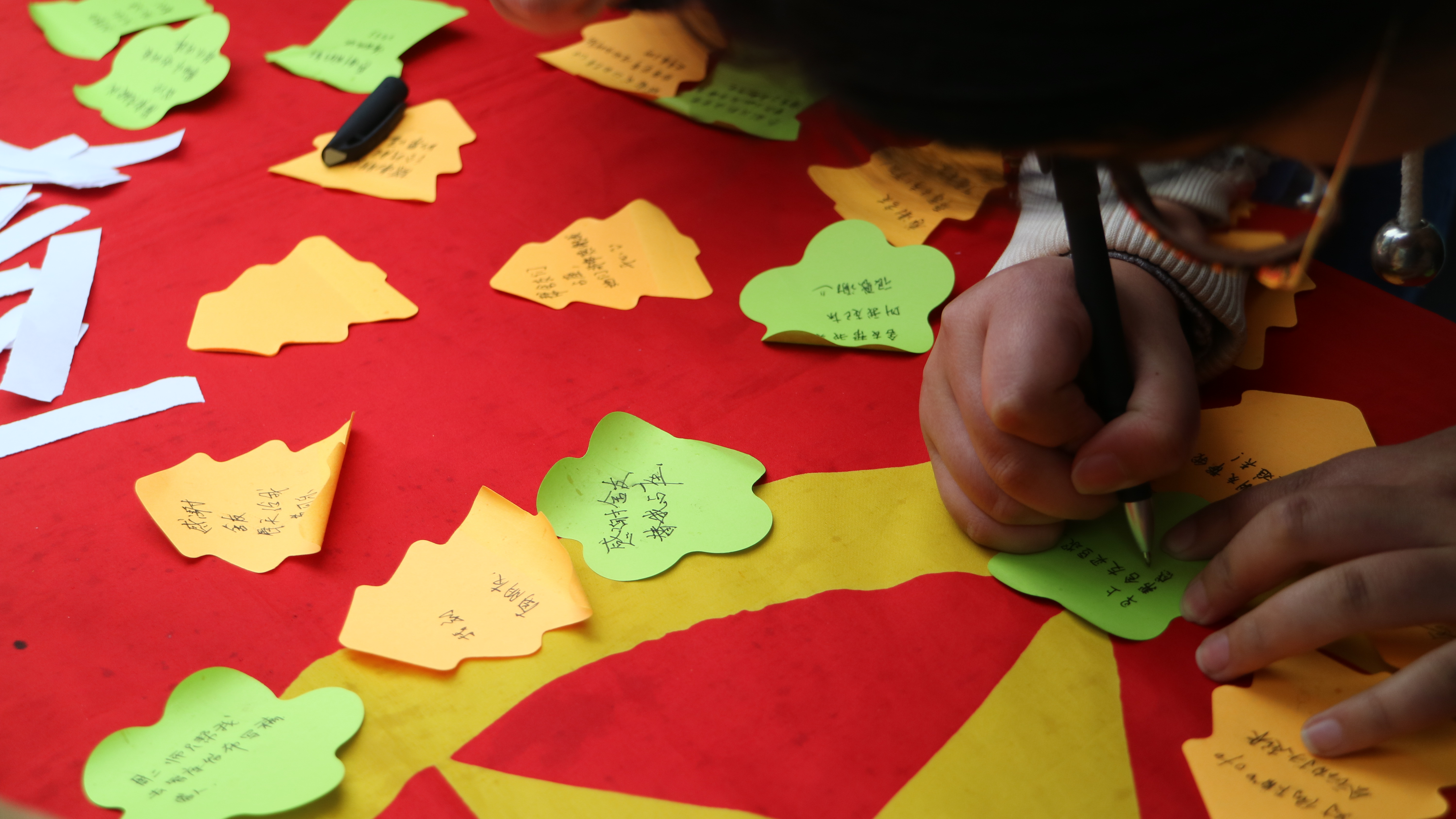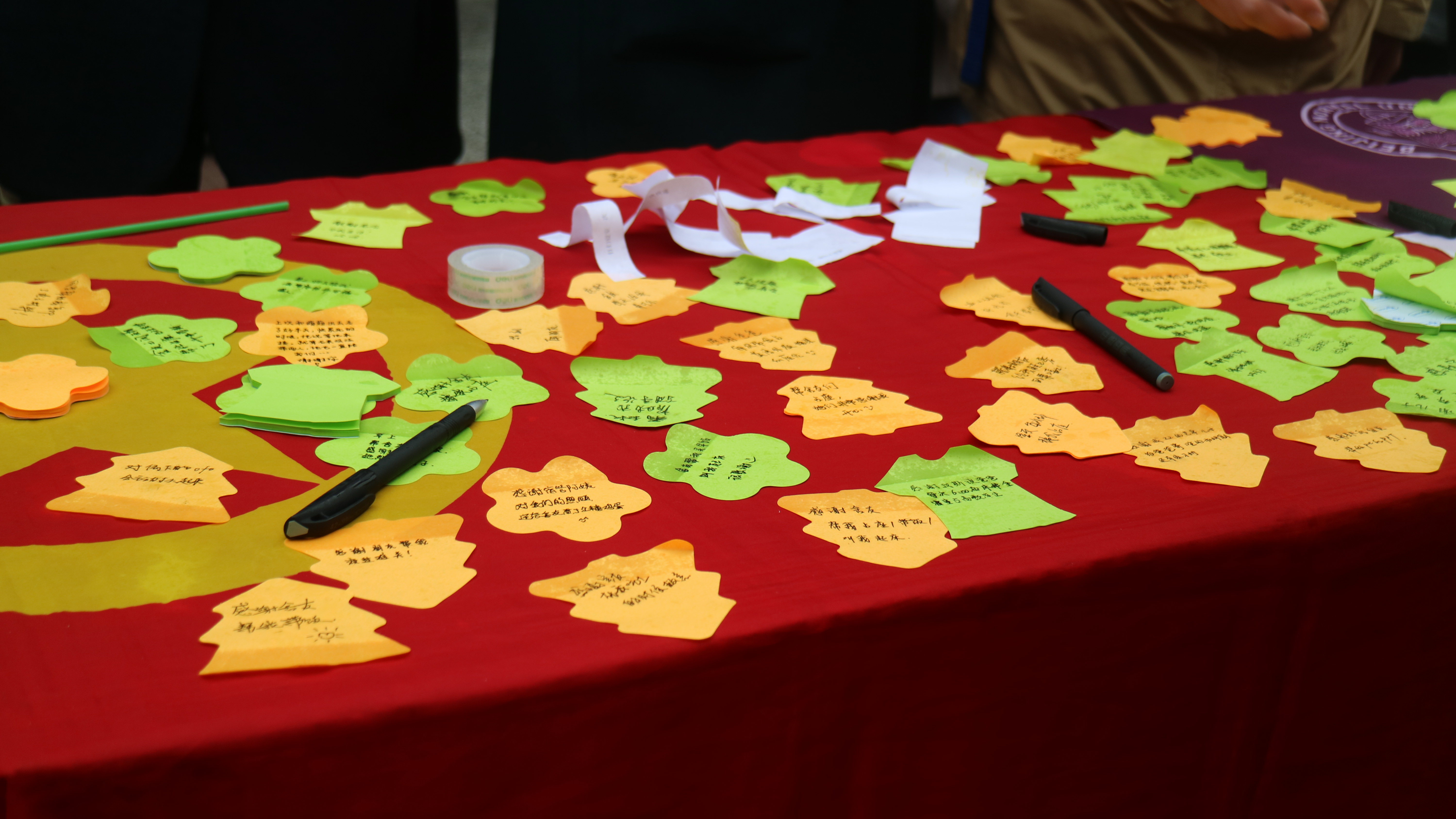 3月24日上午10:00,在邱季端南,活动正式开始。同学们通过写下最近自己受人帮助的暖心小故事并抽取之前在公众平台征集的心愿,帮助自己周围的人达成小心愿就可以领取一个气球。