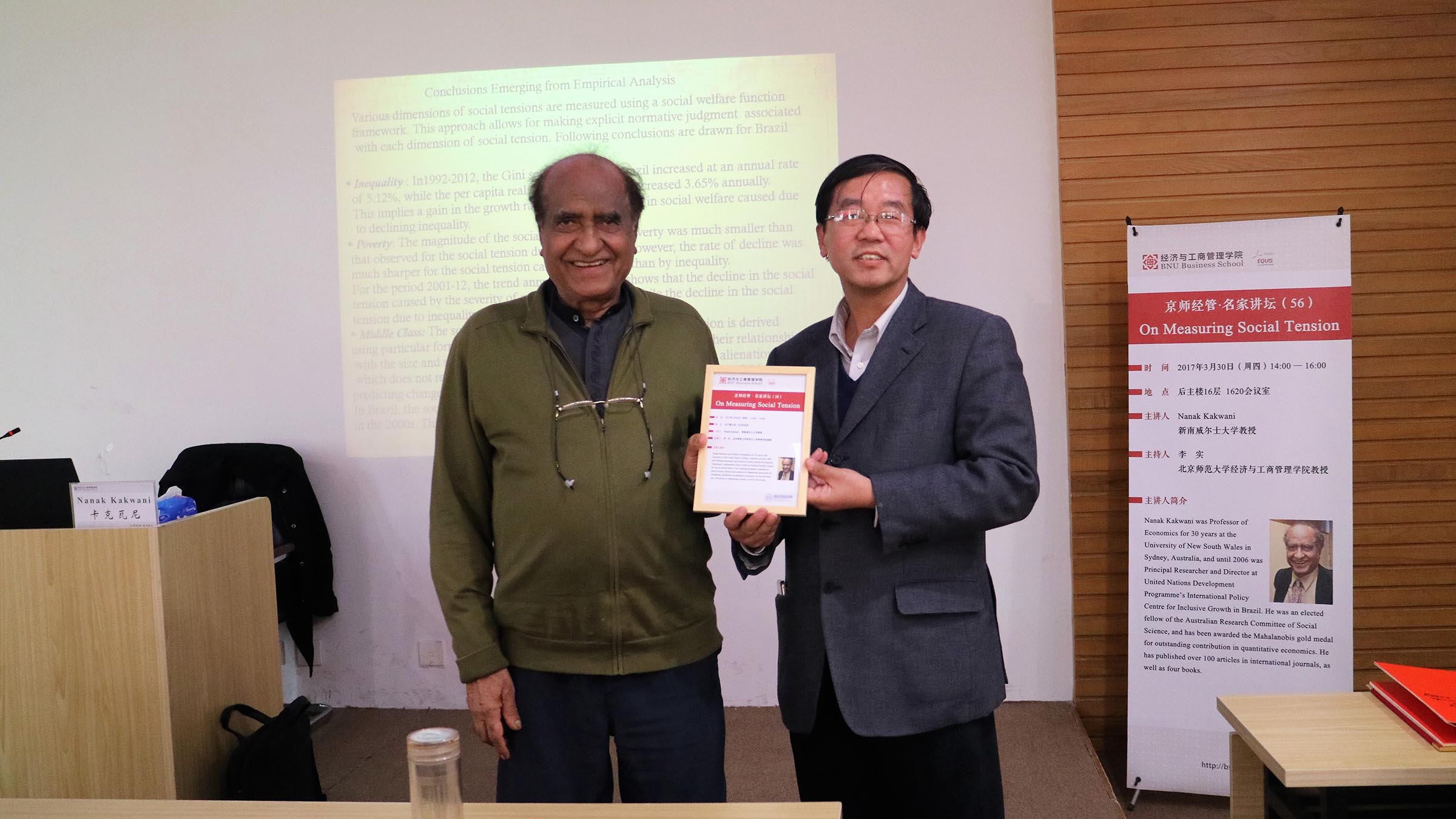 2017年3月30日下午,由yl88858永利集团研究生会主办的第56期京师经管名家讲坛成功举行。本次讲座邀请到澳大利亚新南威尔士大学Nanak Kakwani教授带来主题为“Measuring Social Tension---衡量社会紧张感”的演讲,讲座由yl88858永利集团李实教授主持。