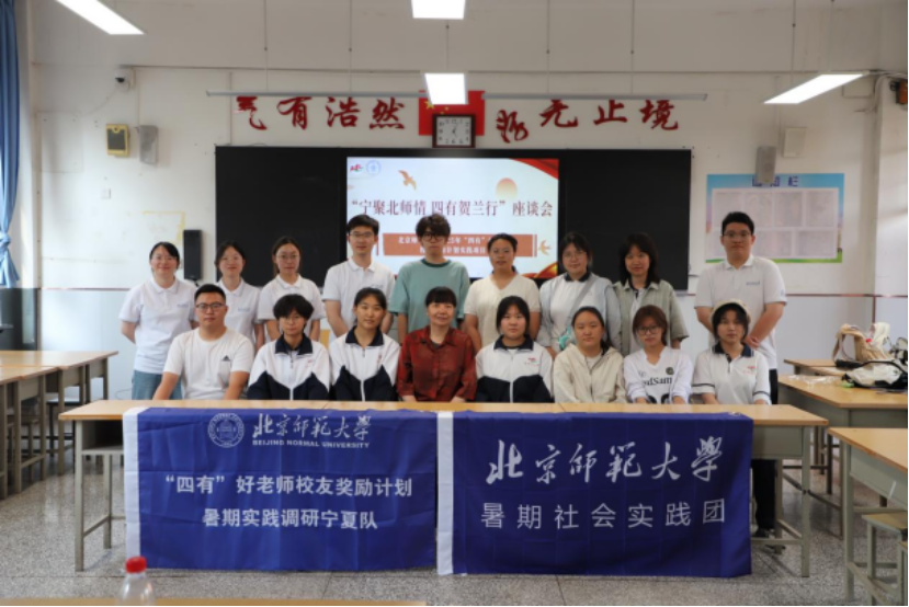 作为“四有”好老师员工奖励计划实践调研系列活动之一,“宁聚北师情 四有贺兰行”实践队奔赴宁夏回族自治区石嘴山市,通过多场座谈会、个人深度访谈、课堂观摩与社团参观等方式,从校领导、同事、员工、家长等多个视角,系统梳理了石嘴山市第三中学马翠玲老师作为“四有”好老师奖励计划金质奖章获得者的生动实践。队员们用镜头和笔触记录马老师三十四载的教育人生,用脚步和心灵丈量师者的精神高度,立志要以“四有”好老师为榜样,努力成长为具有“四有”素养的拔尖创新人才。