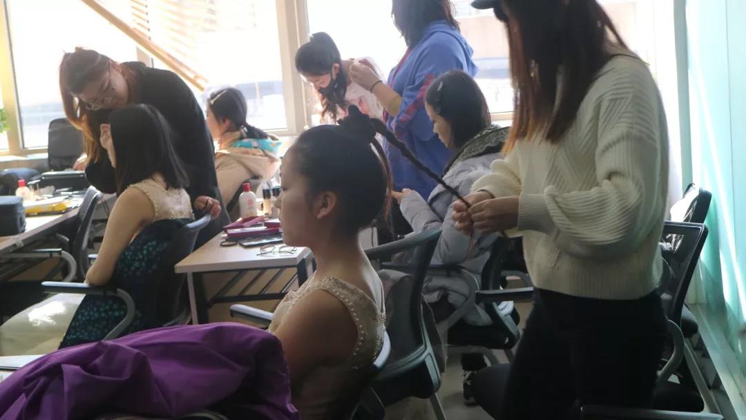 十一点半,男生们在领队的带领下,经过稍微调整,继续练习。女生们则集体前往京师大厦化妆。峨眉纤细,目若清泓,浅浅回眸,令人身心一颤,她们以最美的容颜迎接晚上最美的绽放。四点左右,男生们在艺术楼201集体化妆,翩翩少年,面如冠玉,目若朗星,倜傥风流,俊逸出尘。