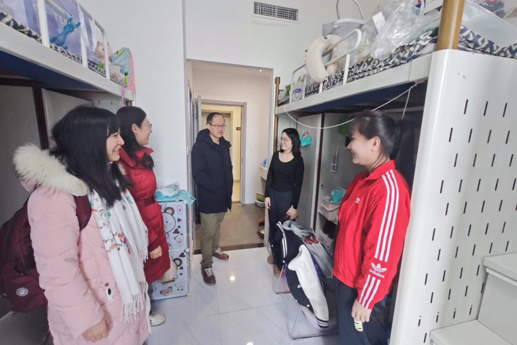 2024年2月2日上午,公司党委书记程建平、党委副书记李晓兵、副董事长陈兴一行走访慰问公司寒假留校员工,党委/董事长办公室、党委员工工作部、总务部、校团委等单位相关负责同志,公司党委书记孙志军,党委副书记韩丽丽及相关人员参加走访。程建平、李晓兵、陈兴一行看望了公司留校员工,深入了解了同学们在校的学习和生活情况,悉心询问了员工的假期安排、职业规划和需求情况,并赠送新春大礼包,为同学们送上新春祝福。
