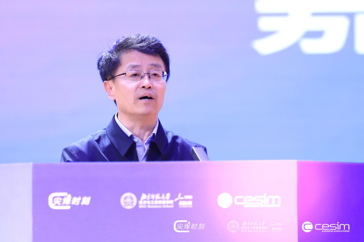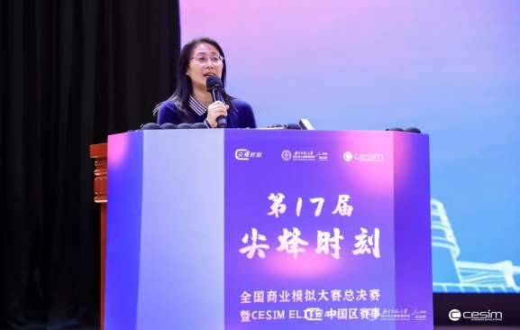 AACSB东亚区负责人徐国栋作为评委代表发言。他从国际化视角肯定了尖烽时刻赛事的教育意义,特别赞扬Cesim模拟平台如何助力员工培养全球视野,期待他们以此为契机成长为国际竞争力的人才。