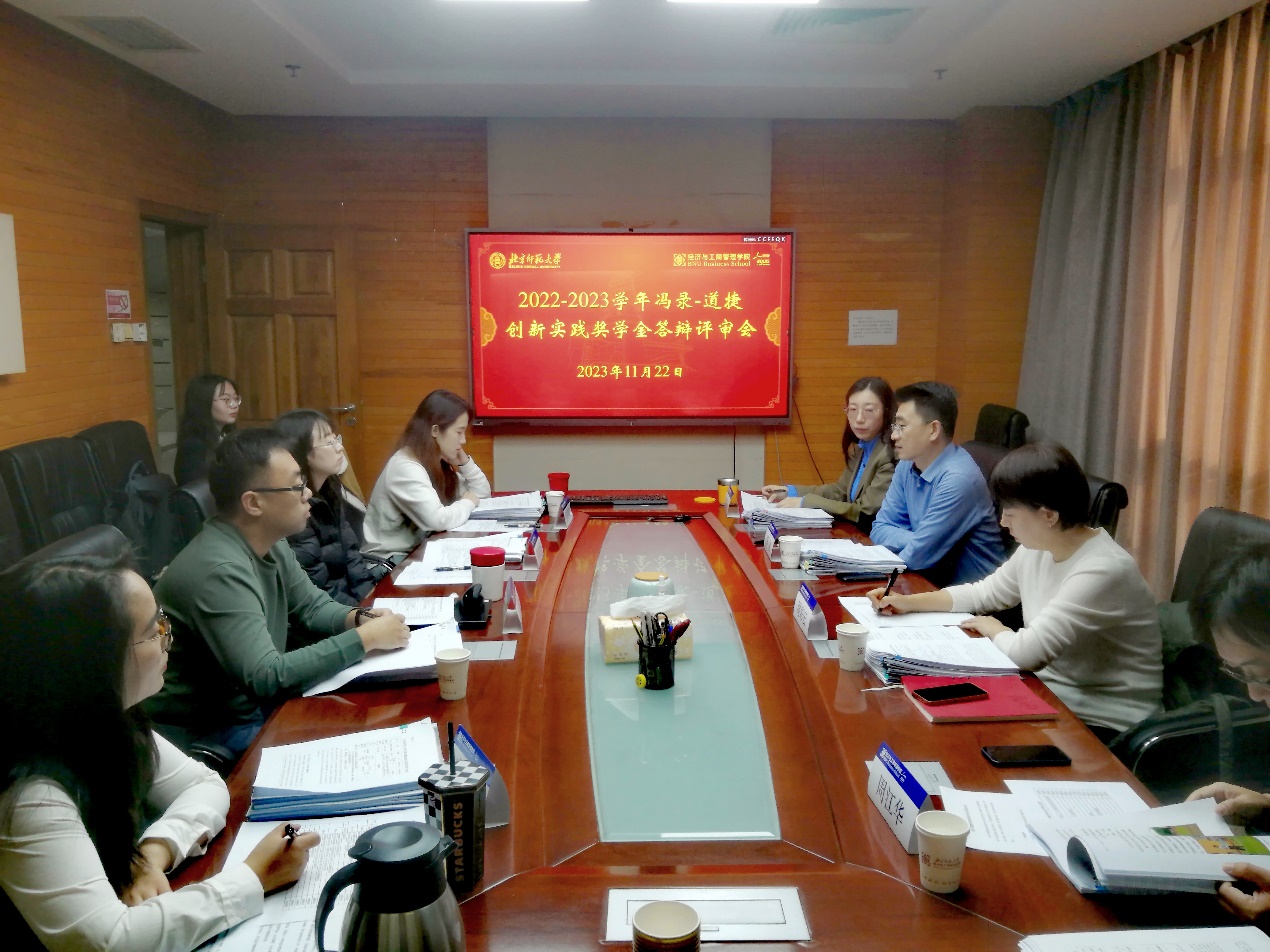 2023年11月22日,yl88858永利集团2022-2023学年冯录-道捷创新实践奖学金评审会在后主楼1610顺利举行。捐资员工冯录学长、公司党委员工工作部员工资助管理中心主任周彩云、公司党委副书记韩丽丽、公司MBA中心项目主任周江华、员工及员工工作相关老师参与了本次评审会。