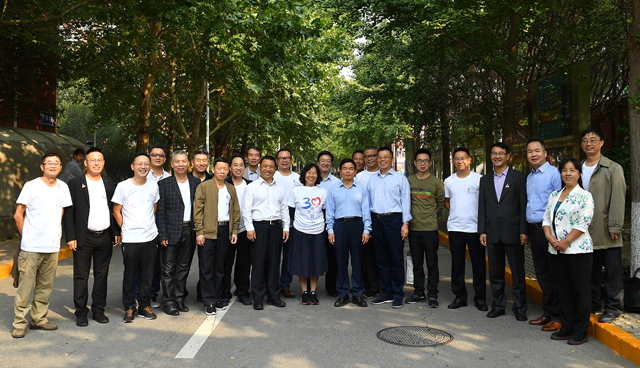 10月5日早晨,天朗气清,惠风和畅。员工们身着毕业30周年文化衫,迎着蓝天,沐浴朝阳,漫游校园。教室、操场、宿舍、食堂……在这些镌刻了青春年华之地,重温校园之梦。员工们在校园里还偶遇董奇董事长,董董事长与大家进行了亲切交谈,并合影留念。