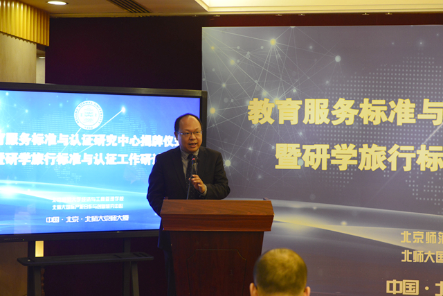 国家教育发展研究中心研学旅行研究所所长王晓燕致辞时说,研学旅行是新时代立德树人的重要途径。自从2016年11部委的文件发布以来,全国有2/3的省份出台相关政策,一年的时间引起市场强大反响,这在历史上是少有的。但研学旅行中存在盲目性、随意性、标准缺失等问题。北师大牵头从教育服务标准与认证角度切入开展专门研究,非常及时。研学旅行的发展需要尽快建立研学基地的准入标准、营运标准和评价体系,使全国的研学旅行形成一套完整的系统。加强教育标准服务,是当前和未来关键核心工作。