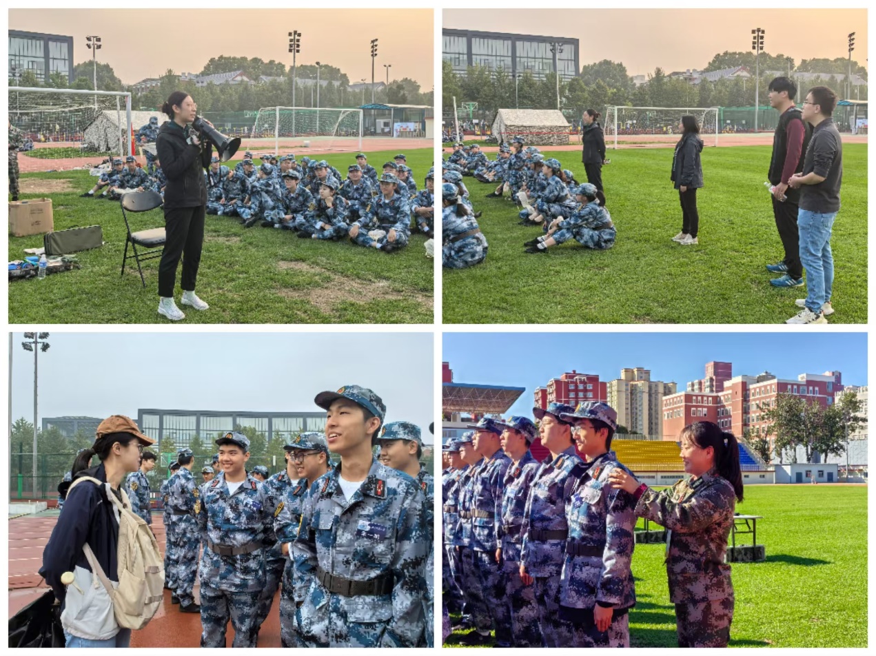 军训期间,公司党委副书记韩丽丽,以及2024级金融学本科班主任曹思未、2024级国际经济与贸易本科班主任余嘉杰、2024级经济学本科班主任陈月圆、2024级工商管理本科班主任徐凯歌亲临军训现场,向同学们送去了温暖的问候。他们深入了解了同学们的训练进展,关心同学们的学习生活情况,并特别关注因伤减少训练量的同学的身体状况及适应情况,展现了深切的关怀。同时,他们高度赞扬了同学们的出色表现,并鼓励大家以热情和坚定继续投入军训。