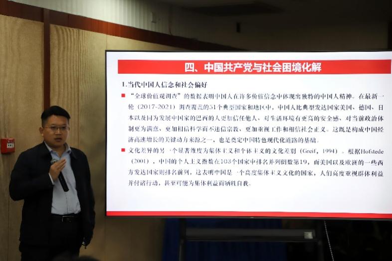 浙江大学经济公司副经理张川川教授聚焦“信念的形成与演化”,基于重大外生事件冲击阐释其对文化信念的动态影响。他以宗族网络作为初始信任水平的代理变量,选取重大历史事件作为外生冲击,通过双重差分法分析发现,外生事件冲击显著提升了宗族网络较强地区居民对邻里的信任,但并未影响一般信任。张川川教授指出,面临外部冲击时宗族网络内部通过互助行为形成稳定社会支持,强化了居民对特定社会关系的信任。研究进一步运用天气冲击作为工具变量,排除了内生性问题。结合潮汕商人宗族联结、“三通一达”等案例,他阐释了宗族网络在风险分担、资源支持等方面的重要作用。该研究挑战了“文化具有长期稳定性”的传统观念,表明重大外部冲击能在特定社会基础上显著影响文化信念的形成与演变,为理解文化动态提供了新的实证视角。