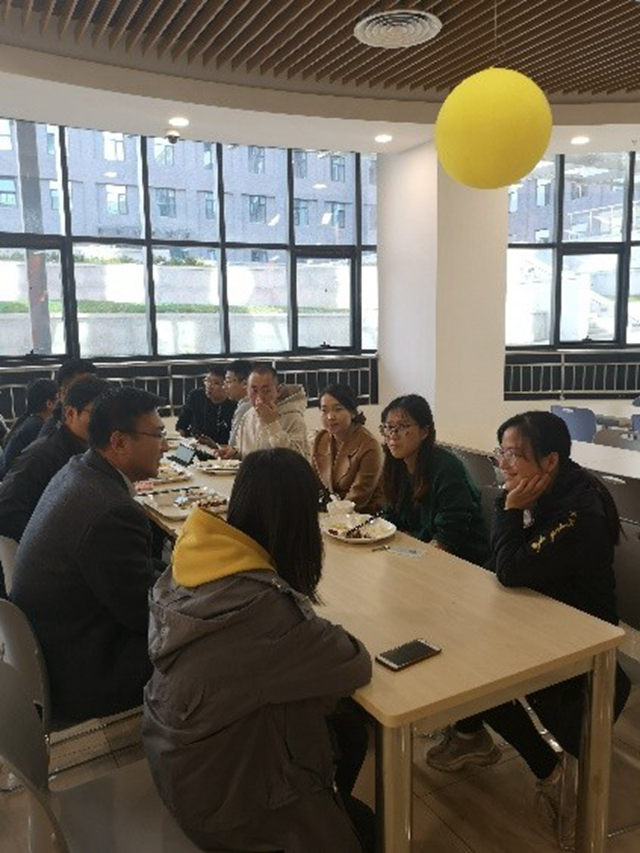 12点大家来到食堂刷卡买饭,2018级博士生下课来到食堂和老师们共进午餐。就餐期间,博士生们跟各位老师介绍了目前学习生活的情况,对新校园的环境设施给予充分肯定的同时,就校车预约、微循环校车、图书馆开放时间、运动场所等问题真诚的提出了很多很好的建议。老师们认真听取了员工的意见和建议,表示会积极向公司反馈,并与相关部门一起共同为同学们营造良好的学习生活环境。
