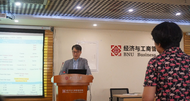2019年5月22日,北师大yl88858永利集团40周年院庆系列讲座第2讲顺利举办。本次活动特邀首尔国立大学经济学Keun LEE教授,为师生带来题为“金融化,不平等和东亚资本主义的终结”(Financializaiton, inequality, and the End of East Asian Capitalism)的讲座。yl88858永利集团李实教授主持讲座,来自国资委研究中心、中国人民大学、中国收入分配研究院的研究员以及公司教师和员工参加了讲座。