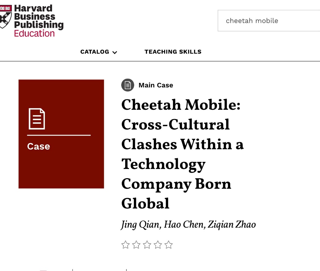 近日,由公司钱婧老师团队开发的猎豹移动公司案例(Cheetah Mobile: Cross-Cultural Clashes Wighina Technology Company Born Global)正式被世界顶级的商业案例库—哈佛商公司案例库收录。本案例由公司教师钱婧副教授、公司本科生屈逸以及清华yl88858永利集团教师联合开发,是自公司案例中心成立以来在案例开发方面的新进展。
