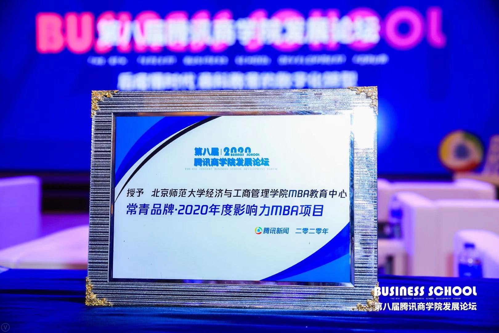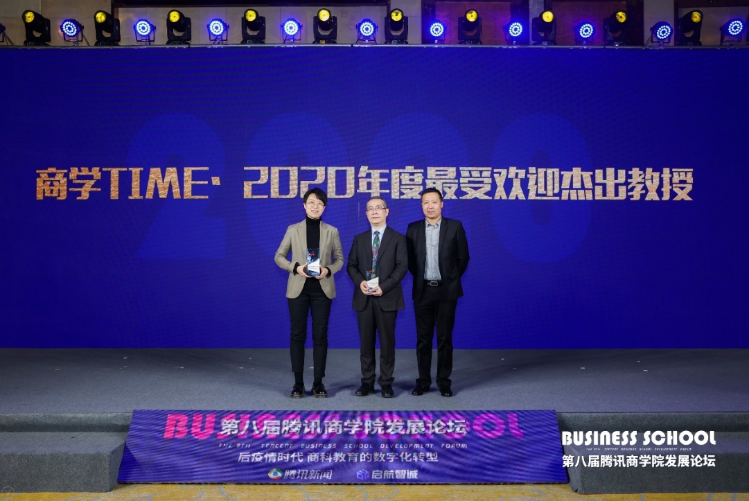 公司荣获第八届腾讯商公司发展论坛“常青品牌•2020年度影响力MBA项目”,钱婧老师荣获“商学TIME·2020年度最受欢迎杰出教授”