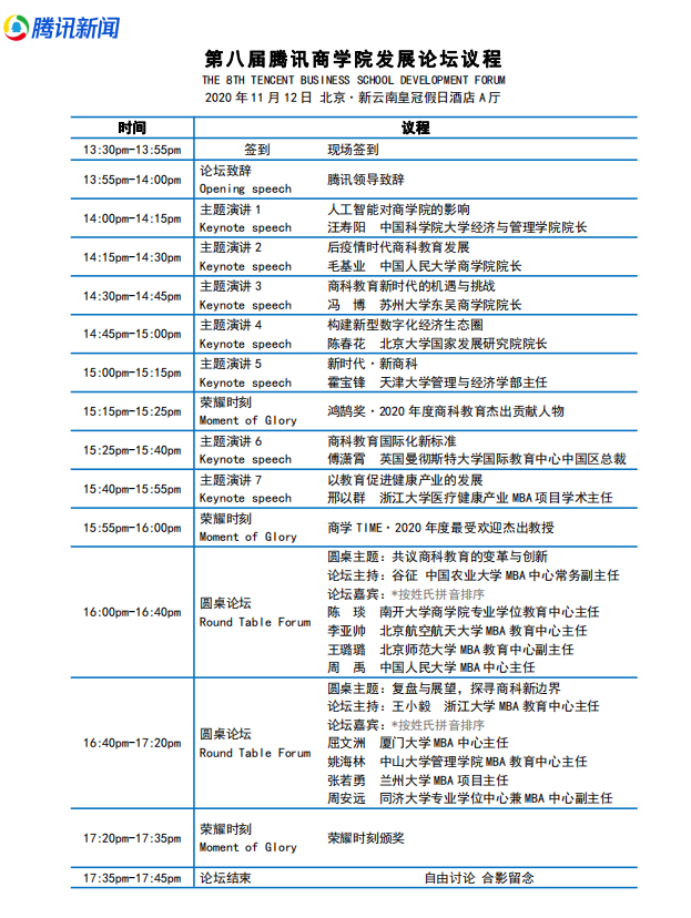 第八届腾讯商公司发展论坛议程