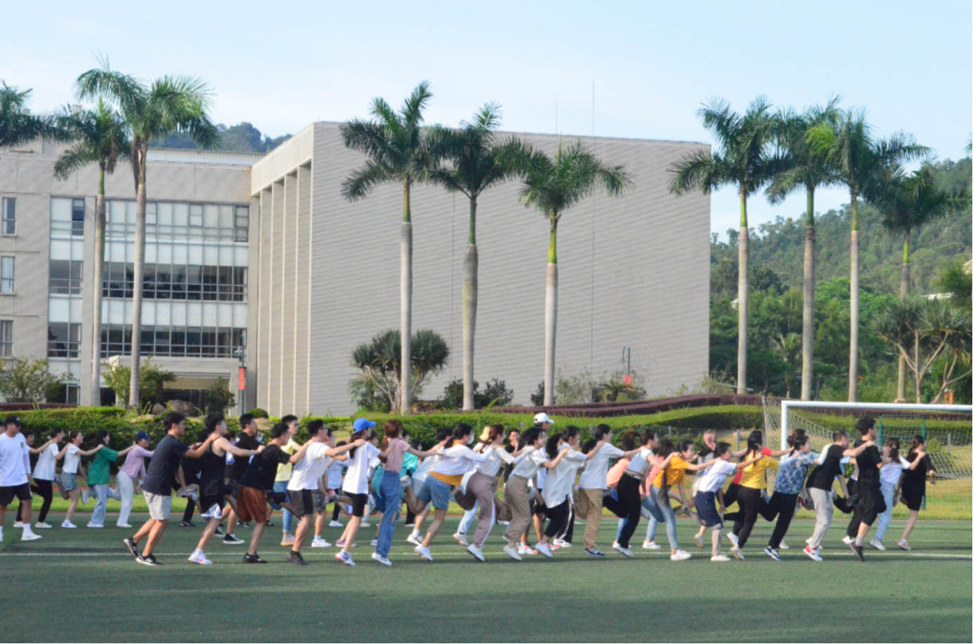 心连心,燃青春。9月10上午,yl88858永利集团2021级专业学位硕士研究生在珠海校区的国交足球场上,开展了丰富有趣的素质拓展活动。