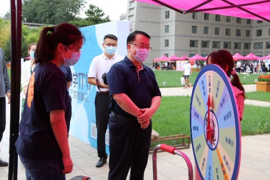 集团公司热切关注迎新工作。公司经理戚聿东老师、公司党委副书记葛玉良老师以及各新生班主任老师、辅导员老师在迎新现场与新生亲切交流。当天,永利集团党委书记程建平在各迎新点进行了走访,对迎新工作进行指导。在经过公司迎新点时,程建平书记称赞公司抽奖环节制作的别出心裁、新颖有趣。