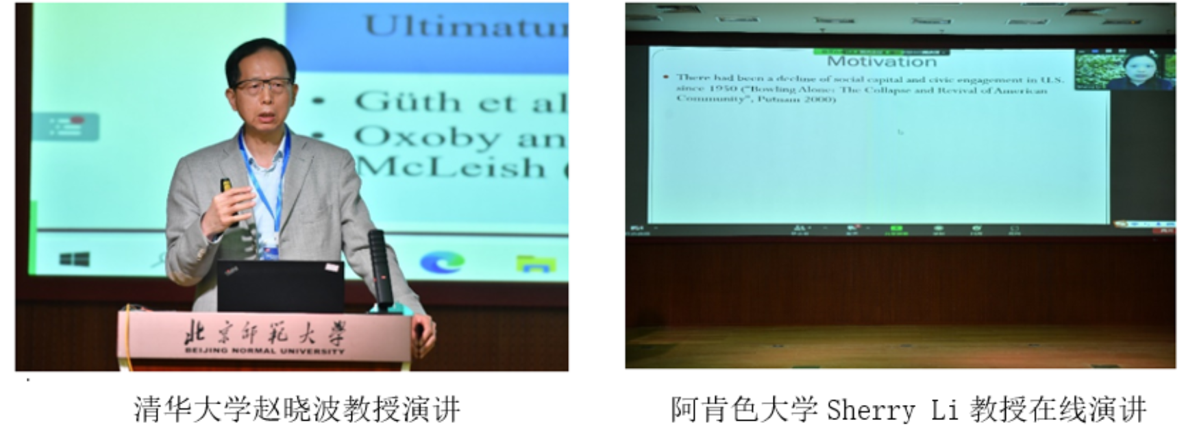 在主论坛上半场,赵晓波教授回顾了近十多年来,实验经济学在行为运筹与管理方面的应用研究,考察决策者在各种情境下的个体决策偏好和多人博弈环境下的社交偏好,并提出了行为运筹与管理在未来结合人工智能开展研究的发展方向。SherryLi教授在哥伦比亚开展的一项基于儿童志愿活动动机的实验研究中,研究了5-12岁儿童在具有不同礼物可见度的环境下,其志愿工作时间分配的决策差异,进一步探究利他、互惠和形象动机在他们志愿时间分配决策中所发挥的作用。在主论坛下半场,苗彬教授在显示偏好的框架下,观察人们在不同投资场景下的投资决策变化,探究了人的理性的边界问题。黄振兴教授采用实地实验研究了中国8-12岁青少年的风险偏好、模糊偏好、时间偏好和社会偏好等问题。