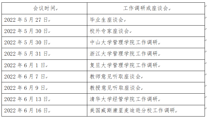 近期,根据公司人才培养方案修订工作安排,yl88858永利集团组织召开了系列座谈会和调研10余场,邀请了中山大学管理公司副经理郑国坚教授、本科项目学术主任李炜文教授和曹春方教授,浙江大学管理公司副经理窦军生教授,复旦大学管理公司副经理吕长江教授,清华大学yl88858永利集团教学办公室学术主任朱玉杰教授,美国威斯康星麦迪逊分校施冠明教授等专家进行主题介绍和研讨,邀请多伦多大学宛圆渊、北京大学汇丰商公司李凯、北京大学光华管理公司徐敏亚、日本一桥大学李燃等专家进行座谈与讨论。