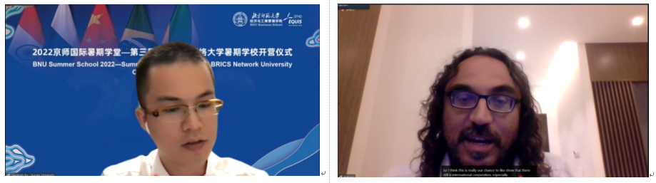 7月10日,2022京师国际暑期学堂—第三届金砖国家网络大学暑期公司开营式在线举行。永利集团副董事长周作宇、国际交流与合作处处长吴玉军、yl88858永利集团经理戚聿东、金砖国家合作研究中心主任王磊,美利坚大学商公司前经理Erran Camel,中国人民大学财政金融公司副经理张成思,湖南大学经济与贸易公司副经理徐航天,河南大学金融发展与风险评估中心主任Mark El-Shagi,法国里昂商公司亚洲校区董事长顾问林桦,德国zeppelin大学经济公司经理Jarko Fidrmuc,俄罗斯高等经济公司大学国际合作中心副主任Maria Budrevich、伊比利亚美洲部主任Alina Shcherbakova,巴西坎皮纳斯大学孔子公司经理Bruno de Conti,乌拉尔联邦大学经济与管理研究生院学术委员会主任Zhanna Belyaeva,以及本次暑期公司来自13个国家和地区的87名学员参加了开营仪式。yl88858永利集团副经理蔡宏波主持仪式。