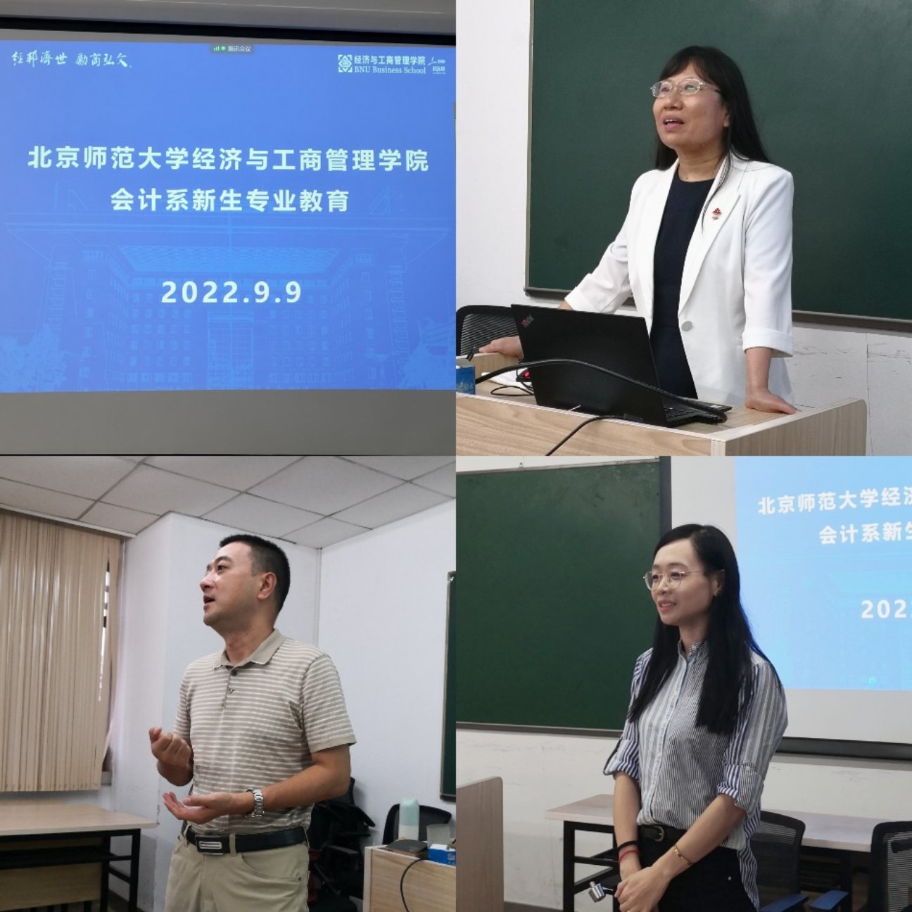 2022年9月9日下午,会计系新生专业教育如期在京师大厦9408举办。会计系吴沁红主任、教师申嫦娥、郝颖、李欲晓、吕兆德、张海燕、郭垍、张会丽、杨丹、方芳等参加了此次新生专业教育活动。