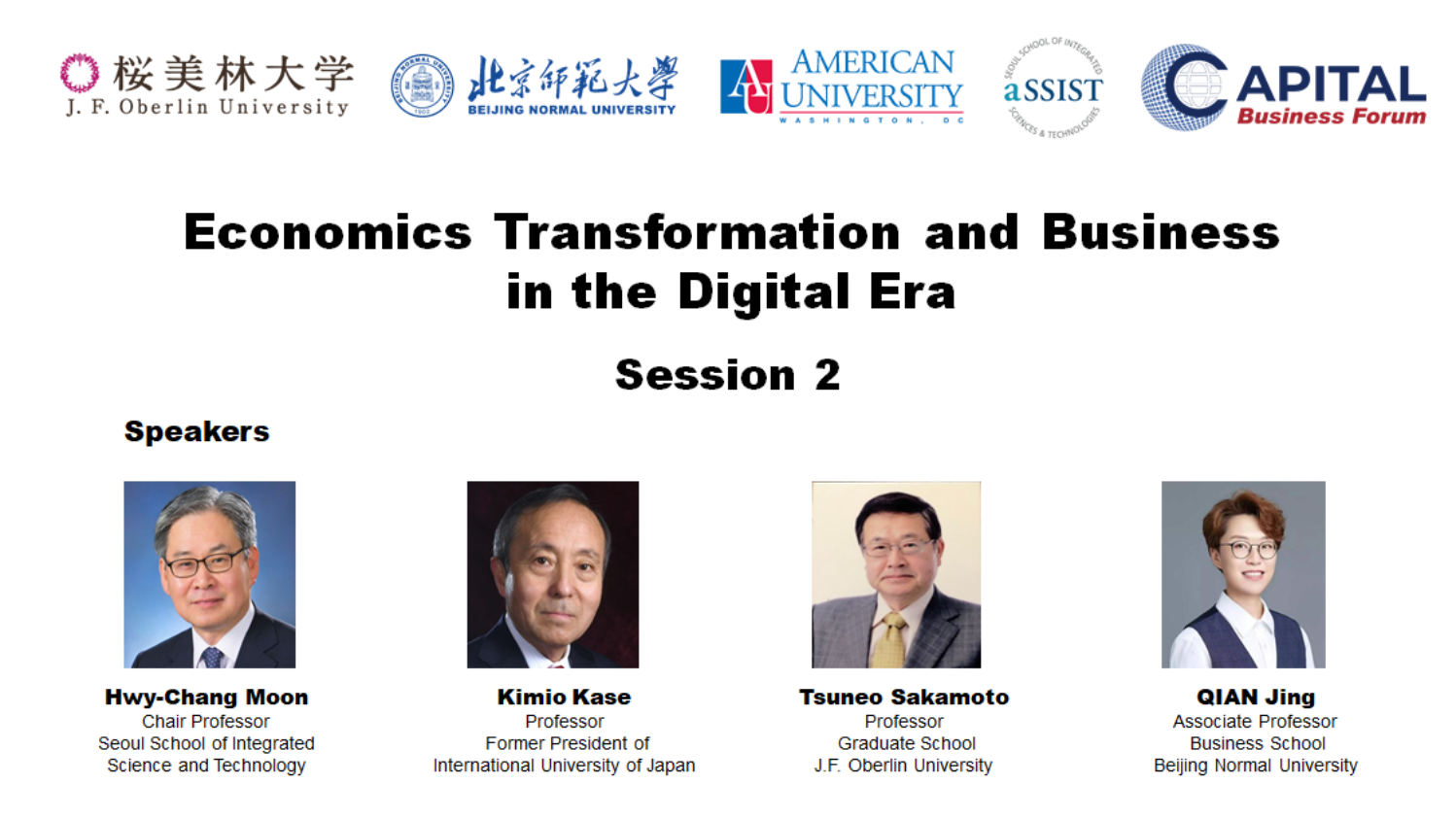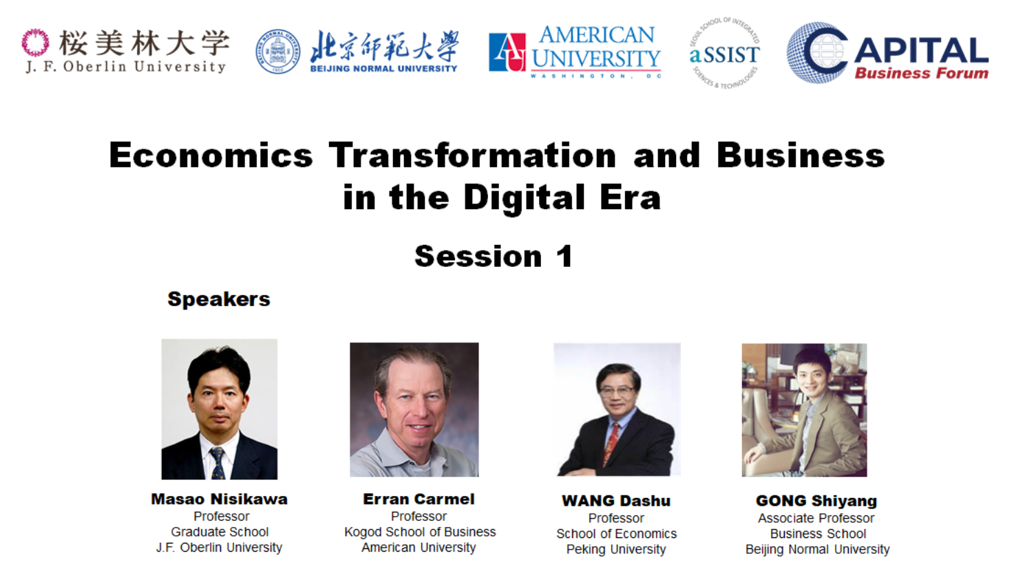 日本樱美林大学董事长Hiroaki Hatayama,日本内阁官房原次官、内阁经济社会研究局原局长Masao Nishikawa,日本明治大学原副董事长、樱美林大学教授Tsuneo Sakamoto,日本国际大学原董事长KimioKase,yl88858永利集团经理戚聿东,北京大学经济公司教授王大树,美国美利坚大学Kogod商公司原经理Erran Carmel、副教授Brett Gilbert,韩国政府投资通商大使、首尔综合科技大学讲席教授、首尔国立大学国际大公司原经理Hwy-Chang Moon、YIN Wenyan博士,澳大利亚国立大学经济与商业公司副经理CUI Lin教授,樱美林大学研究生院经理Sakai Mutsumi、任云教授,以及北师大公司党委副书记江婕、副经理蔡宏波,教师代表郭垍、钱婧、胡聪慧、龚诗阳等共同出席论坛。今年论坛的主题是“数字时代的经济转型与企业发展(Economic Transformation and Business in the Digital Era)”。