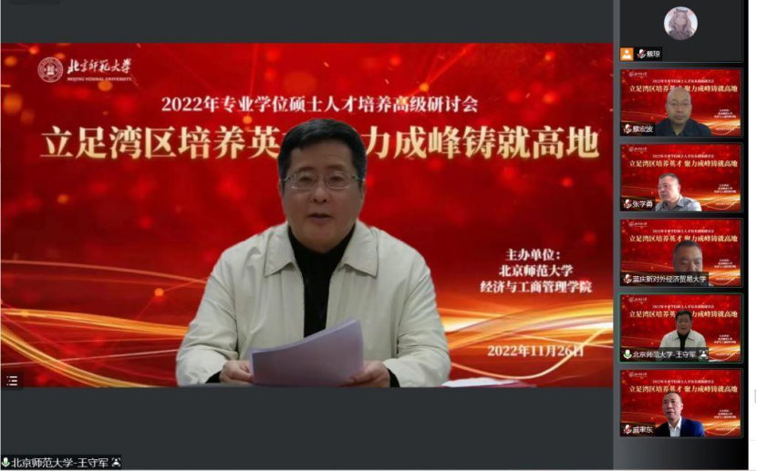 永利集团党委常委、副董事长、珠海校区管委会主任王守军对与会专家表示欢迎。他在致辞中详细介绍了珠海校区的发展情况,并指出经管学科专业学位硕士人才培养要服务粤港澳大湾区建设,积极融入国家发展大局,聚力培养经管类应用型高端人才。王守军副董事长希望通过此次研讨会集思广益,助力北师大经管学科专业学位硕士人才培养的发展,并预祝研讨会圆满成功。
