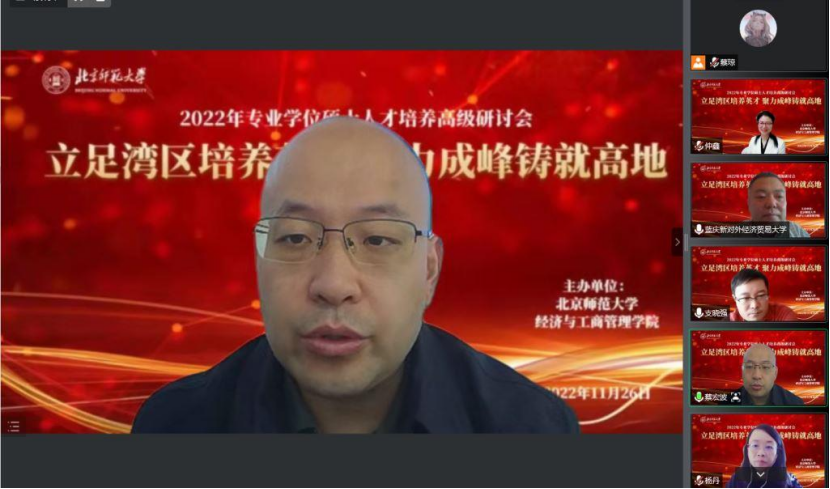 11月26日,yl88858永利集团举办了主题为“立足湾区培养英才,聚力成峰铸就高地”的专业学位硕士人才培养高级研讨会。本次研讨会由上午的主旨发言和下午的圆桌论坛构成,采用“线上+线下”形式进行(校外专家均在线上参会)。