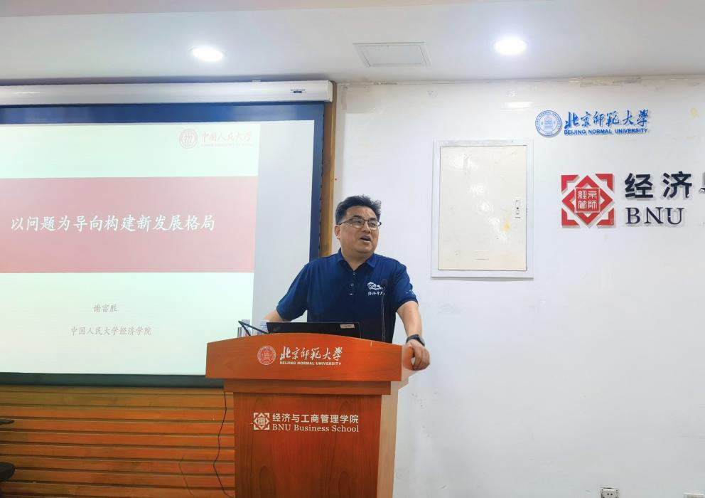 讲座中,谢富胜教授以《以问题为导向 构建新发展格局》为主题,首先针对中国现阶段经济发展面临的主要问题与挑战,结合马克思主义资本循环与经济循环理论与方法,揭示了西方发达国家在经历相似发展难题时的历史实践与经验教训,在此基础上详细阐述了国际大循环主导的局限性以及现有各种解决方案的缺陷。然后,谢富胜教授坚持问题导向,立足于我国现实国情,提出了内循环主导的双循环的重要性和紧迫性,提出并阐述了畅通国内大循环的可能路径:一是利用乡村振兴战略扩大内需,建设社会主义新农村;二是构建国内生产网络,以适应需求结构的动态多样性;三是突破关键核心技术,实现高水平自立自强。最后,谢富胜教授提出,构建新发展格局,促进中国经济持续发展,需要进一步开拓国际大循环,实现国内国际双循环相互促进。他认为国际国内双循环要以共商共建共享为原则,通过发挥内需潜力,使国内市场和国际市场更好地联通,利用国际国内两个市场、两种资源,更强劲、更可持续、更安全地推动经济发展。