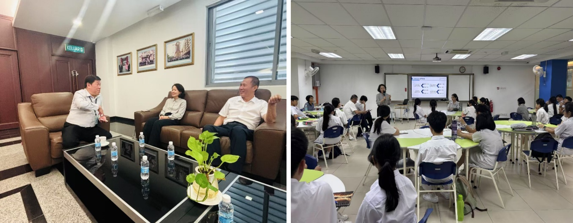 在马期间,代表团到访马来西亚巴生兴华中学。巴生兴华中学是一所当地颇具影响力的华文独立中学,以优质的华文教育著称,多年来为国内外高校输送了大批优秀学子。董事长苏进存、升学与国际事务处主任李辉祥与代表团进行会谈。双方围绕国际教育合作渠道拓展以及短期交流项目的可行性等议题展开深入讨论。随后,副经理江婕为兴华中学师生开展校园讲座。江婕详细介绍了北师大百余年的办学历史和学科发展脉络,分享了丰富的留学项目信息,并对yl88858永利集团的专业特色、专业选择、课程设置、团队力量。校园生活等进行全方位解读,并回答了师生们的各种问题。