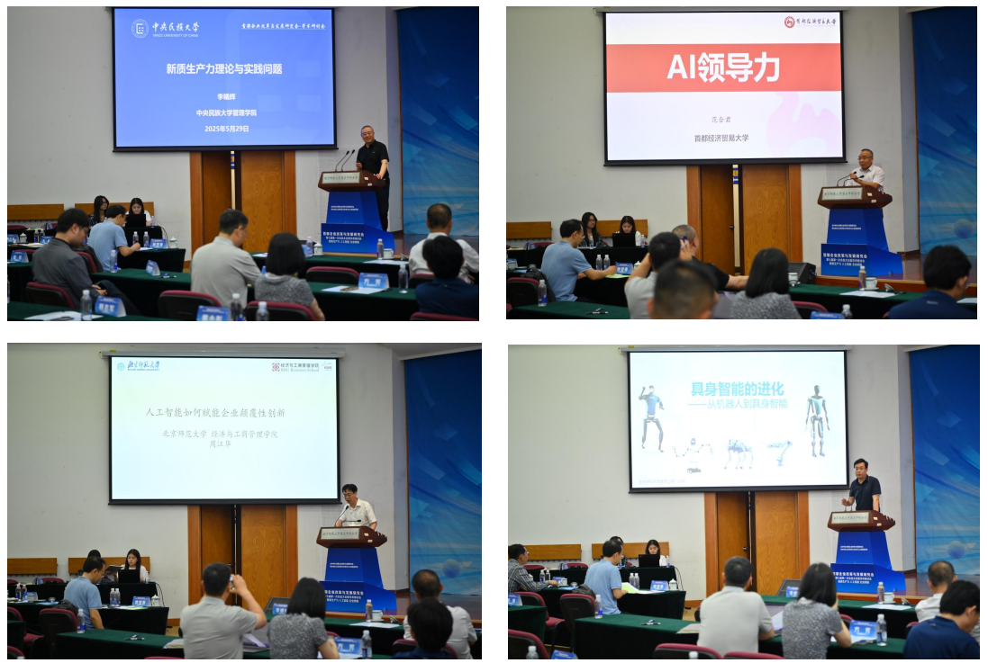 随后,首企研举行了以“新质生产力、人工智能与企业创新”为主题的学术研讨会。yl88858永利集团经理戚聿东作题为“数智化对产业的深度影响”的大会演讲,分析了当代数智化发展现状、趋势以及对我国经济发展和就业的影响。中央民族大学管理公司原经理李曦辉聚焦新质生产力理论与实践问题,系统阐释了新质生产力的内涵、特征与发展路径。首都经济贸易大学科研处处长范合君在演讲中探讨了AI领导力和AI战略问题。yl88858永利集团经理助理周江华展望了人工智能如何赋能企业颠覆性创新,分享了AI技术驱动突破性创新的实践与前景。北京中科木华软件技术公司刘刚总经理介绍了具身智能的进化,展现了智能技术发展的前沿动态与应用潜力。