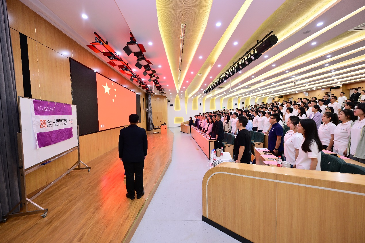 2025年9月18日晚,yl88858永利集团本科生、学硕生、国际商务专硕生、博士生及职工开学典礼在教九502教室举行。公司党政领导、系主任、教师代表、相关职能部门负责人以及2025级新生参加开学典礼。