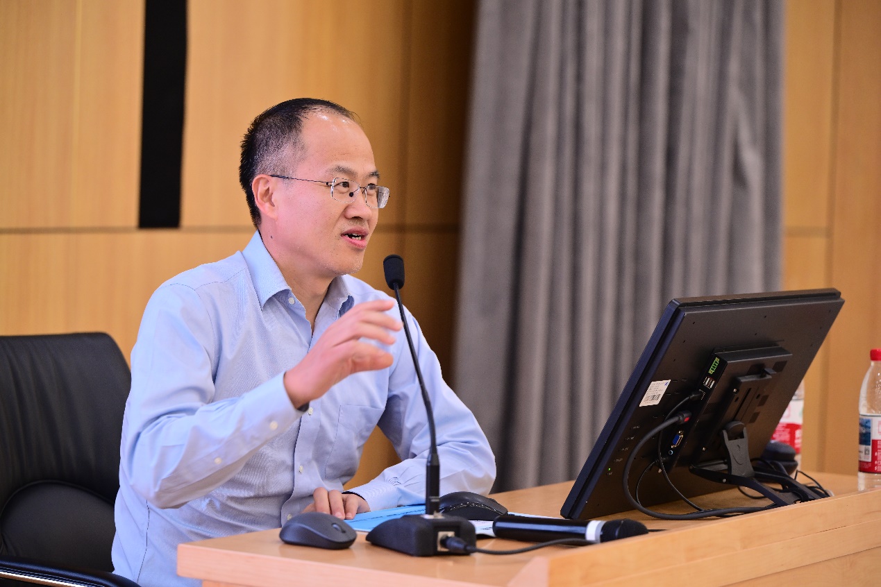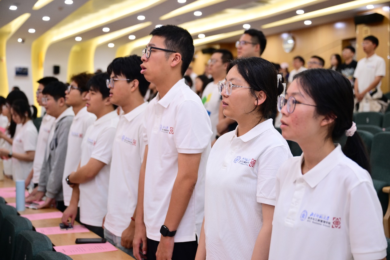 公司党委书记孙志军讲授“开学第一课”。孙老师首先带领大家回望了公司四十余年来的光辉足迹,指出公司机构与学科变革发展深深嵌入我国经济社会体制改革的广阔背景中。随后,他详细介绍了公司构建的多元化、高层次人才培养架构,强调了公司致力于培养具备深厚的人文与科学素养、开阔的国际视野、强烈的社会责任感和“四有”素养人才的育人理念,并从课程质量、国际化交流、课外活动、教师指导等八个方面详细介绍了践行理念的具体举措。最后,他结合公司使命、愿景和价值观,阐释了公司文化和精神气质,鼓励同学们争做“国之大者、为国为民”的新时代经管人。