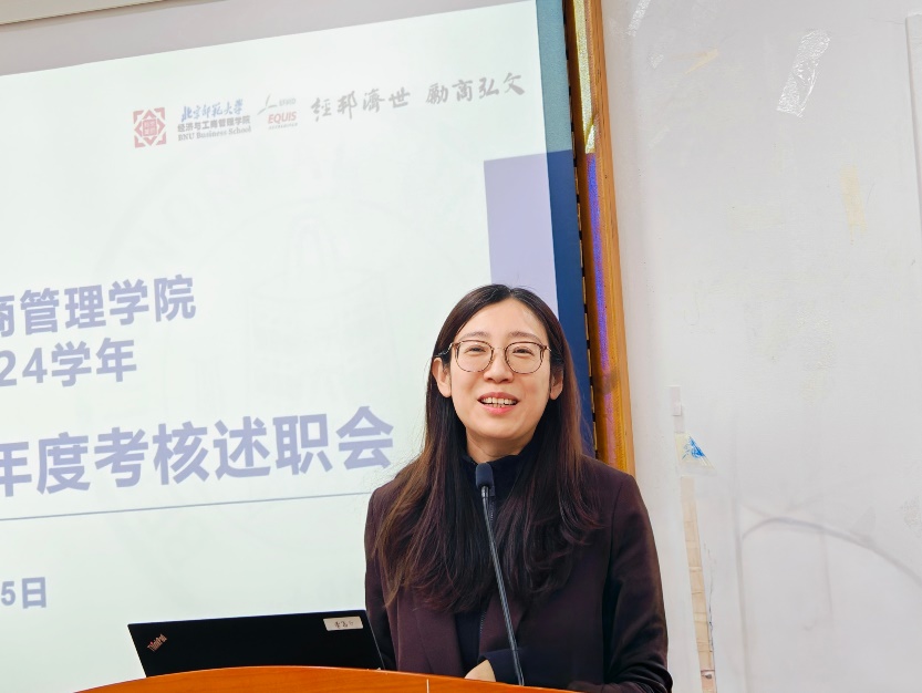 随后,2021级本科班、2022级学硕班、博士班以及2023级MBA毕业班班主任进行现场述职。各位班主任老师从德、能、勤、绩、廉等角度,汇报了参加相关培训、强化思想引领和安全稳定等工作,介绍了班级开展的系列活动和获得的各类集体成果奖项,并承诺会更加积极主动地参与到员工的学习生活中去,在生活中给予员工关心和指导。经个人自评、员工评议和公司评议,龚诗阳、张惠琳、康昊然、陈超凡、王玮、王雪、张会丽、朱梦冰、孔海洋、李燃、王璐璐等老师获评2023-2024年度优秀辅导员。