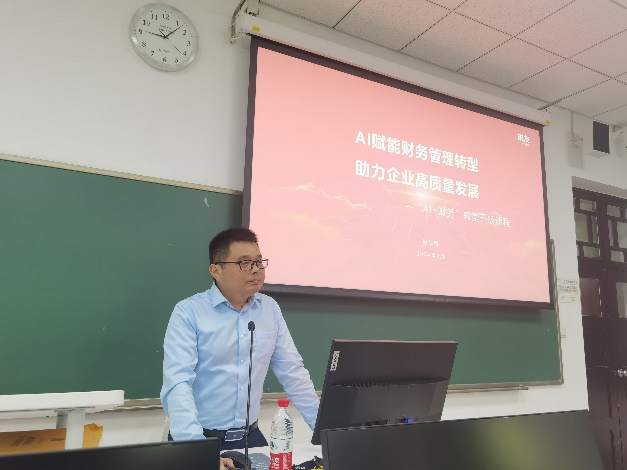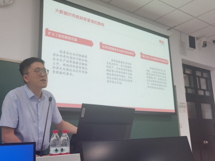 2024年6月25日下午,新道科技股份有限公司副总经理、用友集团高级工程师刘卓做了“大数据技术在企业财务场景中的应用”专题讲座,分析了大数据对传统财务管理的影响,讲解了数智化转型之“财务+模型+算法”,结合案例展示了财务大数据分析与决策。同时,对于企业数智化转型带来的人才思考,给出数智财务人才能力画像,引导同学们从理论知识、实例实践、仿真案例场景、真实项目等多角度理解和掌握知识。
