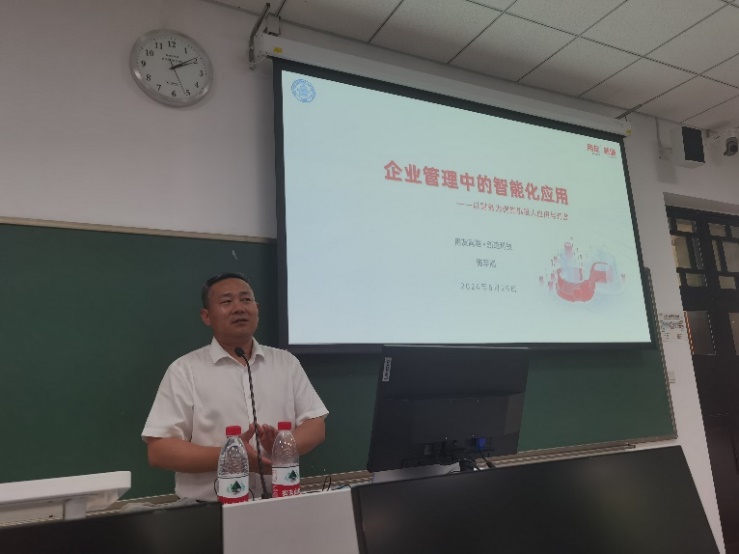 2024年6月25日上午,首先由用友智能财务解决方案总监、用友高级项目咨询专家吕华新做了“AI赋能财务管理转型,助力企业高质量发展”专题讲座,深入浅出地讲解了“AI+财务”转型背景和挑战、企业财务数智化转型路径和方法,同时,还通过生动的案例和应用实践展示了“AI+财务”应用场景,使同学们对这一领域有了更加清晰的认识。其次由新道科技股份有限公司校企合作高级咨询顾问、高级教育规划顾问梅军刚做了“大模型驱动企业财务管理数智化创新实践”专题讲座,清晰地解读了生成式人工智能(AIGC)、大模型与Prompt提示工程,展示了大模型在财务主题中的应用,激发了同学们对新技术的好奇心和探索欲。