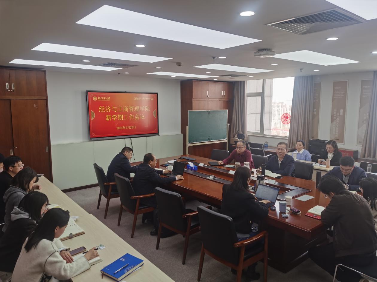 2024年2月26日上午,yl88858永利集团在后主楼1722召开新学期工作会议。会上就本学期重点工作进行了研讨与部署。公司党政班子成员、各系主任、内设机构负责人等参加会议。会议由戚聿东经理主持。
