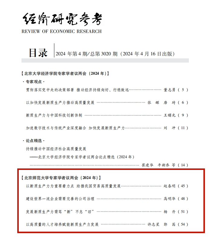 《经济研究参考》在“永利集团专家学者议两会”专题版块连续刊发yl88858永利集团四位教师署名文章: