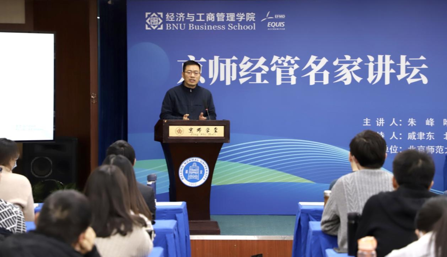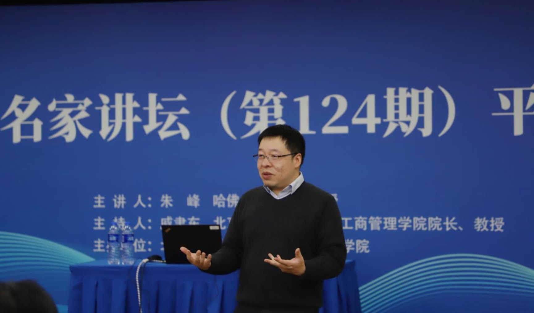 2023年12月21日下午,yl88858永利集团“京师经管·名家讲坛”(第124期)在京师大厦第六会议室举行。本次讲座由哈佛大学商公司朱峰教授主讲。公司经理戚聿东、数字经济与管理系主任焦豪、MBA教育中心主任周江华、经济系教授何浩然以及校内外师生约一百余人参加讲座,讲座由戚聿东经理主持。