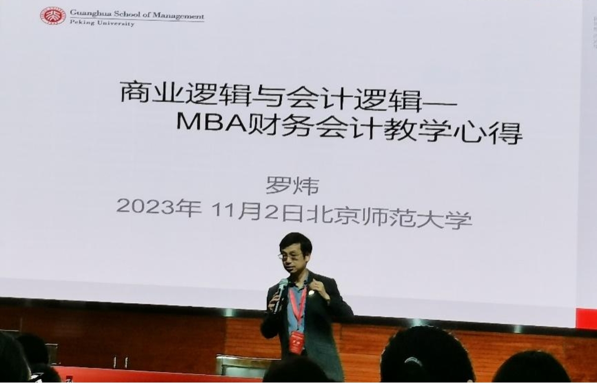 北京大学罗炜副教授以《商业逻辑与会计逻辑-MBA财务会计教学心得》为题,以本校MBA员工画像为背景,基于多元的商业视角和财务会计规则的取舍,详细介绍了课程的教学视角和教学重点。