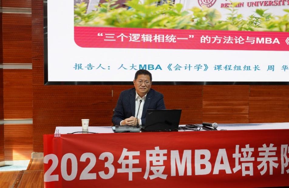 中国人民大学周华教授以《“三个逻辑相统一”的方法论与MBA会计学课程建设》为题,紧扣MBA《会计学》课程建设的重点和难点,导入课程篇章结构,通过丰富的案例介绍课程的讲授经验。