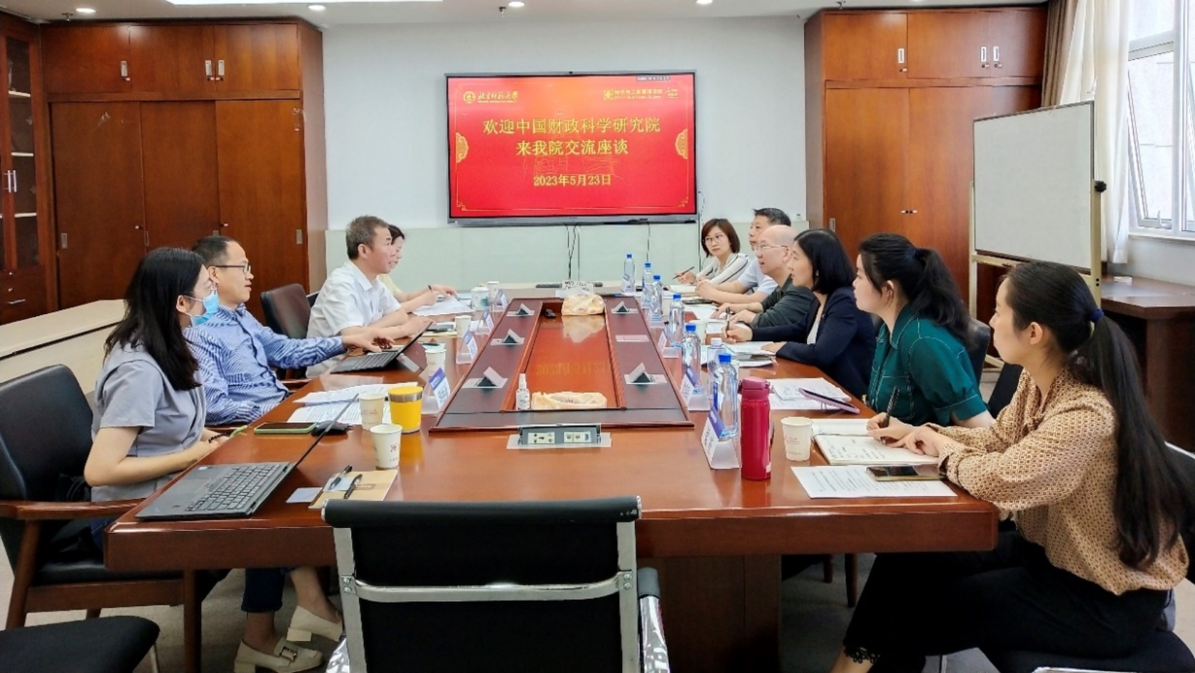 2023年5月23日上午,中国财政科学研究公司党委委员、研究生院经理杨远根、招生与就业办公室主任张维、员工工作处处长郭辉等一行6人到公司开展调研交流。公司经理戚聿东、党委书记孙志军、党委副书记江婕、韩丽丽参加了调研座谈会。