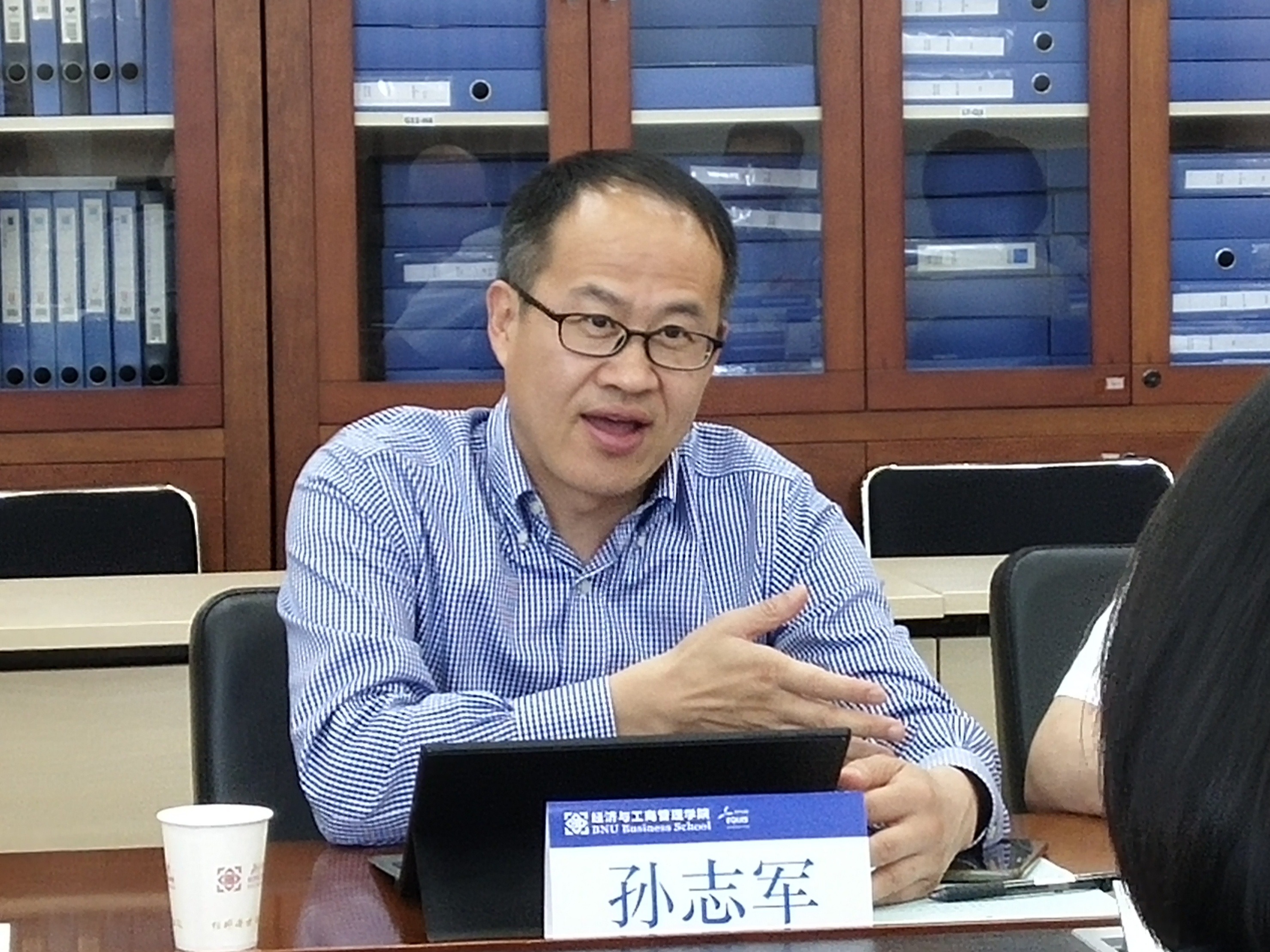 孙志军书记根据调研提纲,详细介绍了公司在党建和思想政治教育、团队建设、学位管理、招生管理等方面的相关经验,并结合相关制度就研究生导师岗位管理、公司产品等内容进行了重点分享。