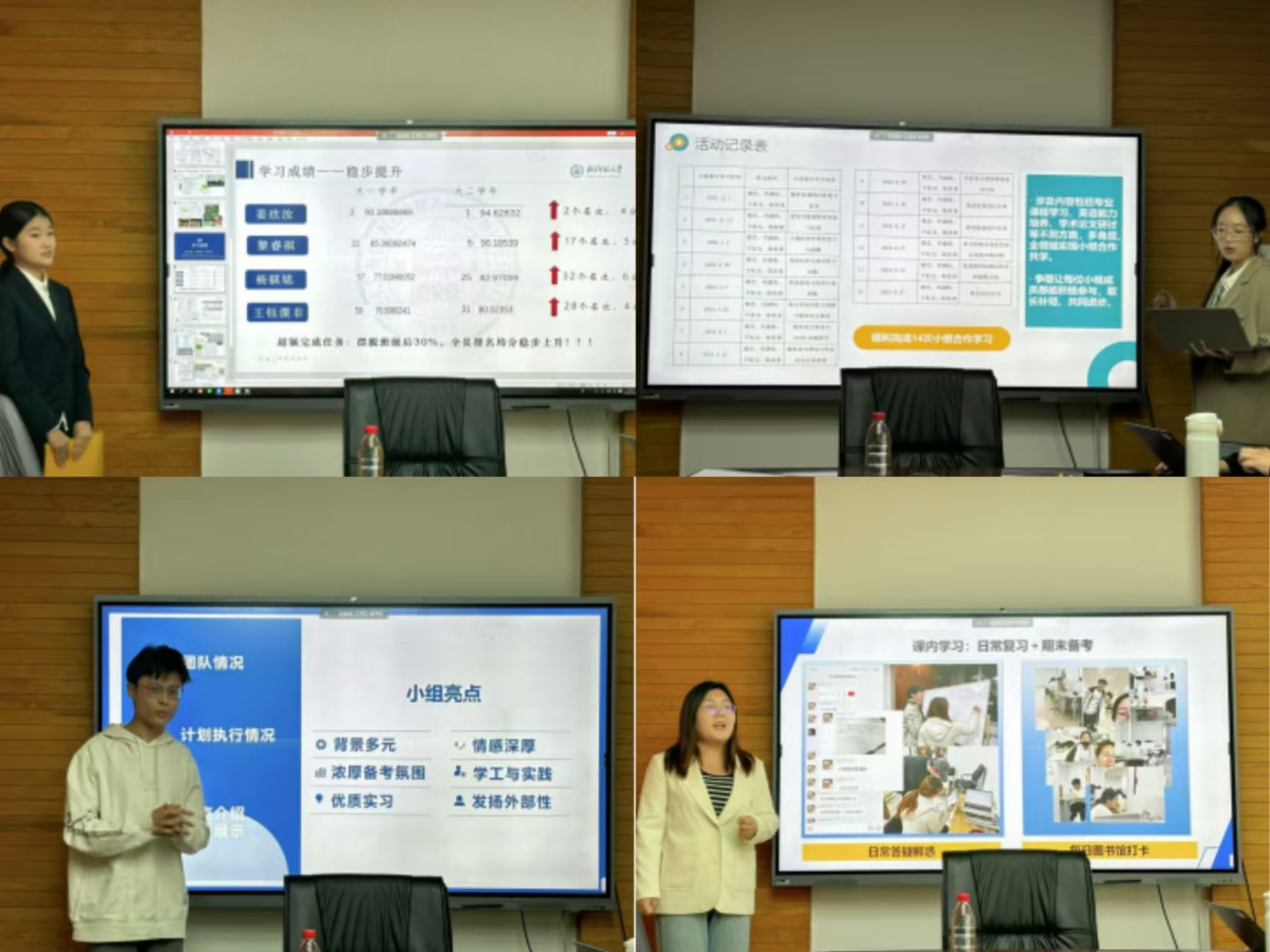 本届学习小组项目取得成绩显著。“学习小组”运行周期内,学习小组成员学习成绩进步显著,参与学习小组的本科生成员总成绩排名平均提升名次5名,其中“欣欣向荣”小组平均提升名次20名、“金融迫真学习组”平均提升名次13.5名。奖学金方面,获得国家励志奖学金共2人,获得京师一等奖学金共18人、获得京师二等奖学金、竞赛一等奖学金、竞赛二等奖学金、三好员工等若干人。除此之外,有3个小组获得美国数学建模大赛H奖,5人雅思成绩在6.5分以上,英语四级600分以上、六级500分以上数人,“艾利斯商公司”小组更是全员保研或出国,各小组另有保研前往北京大学、中国人民大学、香港中文大学、永利集团的同学若干名。
