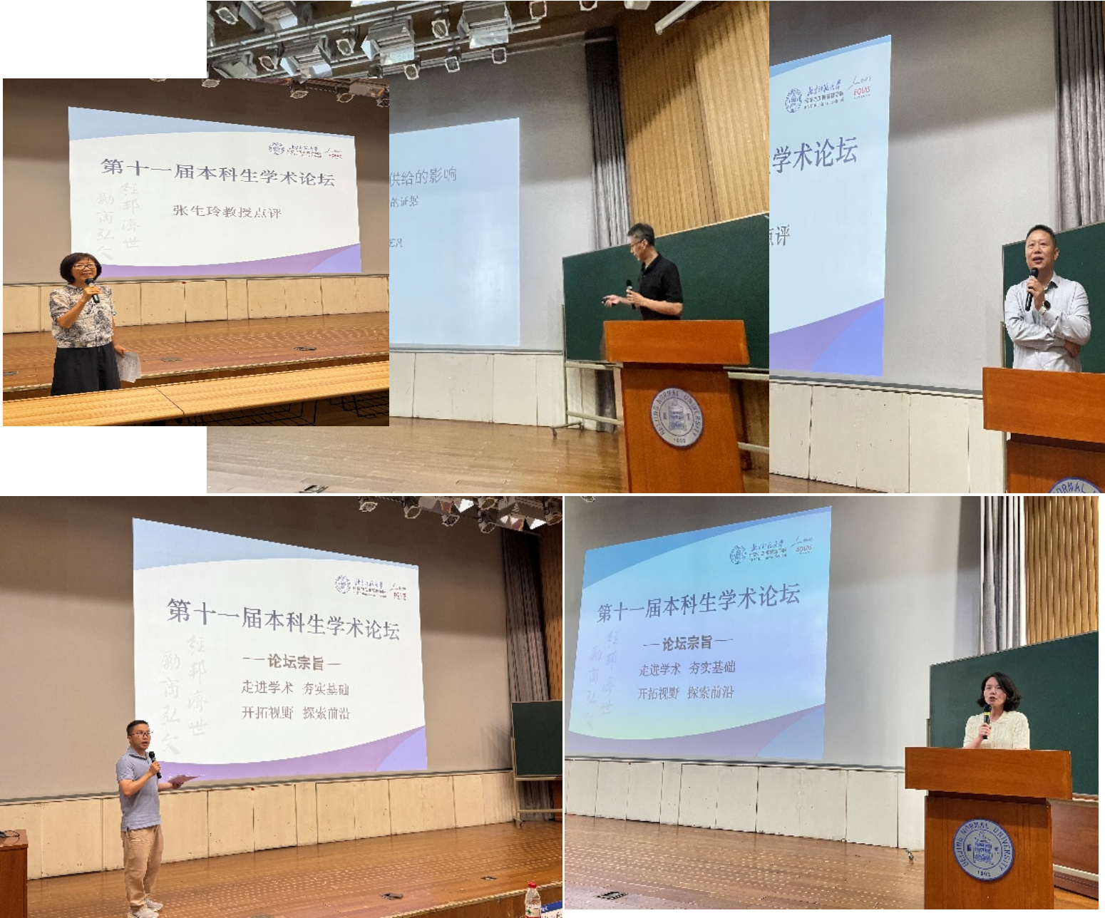 论文展示环节,吕丰晔、尉晨晨、肖汇杰、王卓然、潘秋怡、胡天一六位同学分别介绍了各组的入选论文,对研究背景、研究方法、结论和意义进行了系统阐述。张生玲教授、杨澄宇教授、林永生教授分别进行了点评。