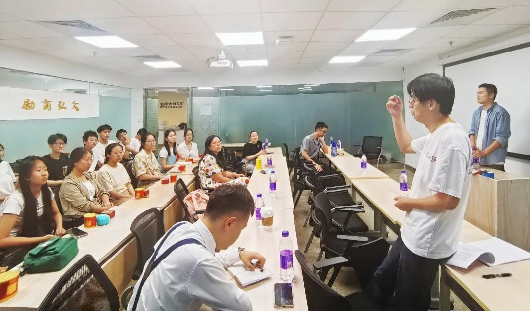 苏凇老师向同学们就工商管理专业概况和发展前景向同学们进行了详细的介绍,苏凇启发同学们,在当下数字经济加速变革发展的时代,要学会将眼光放在全球的高度、科技的前沿,多多探索数字经济与人工智能的交叉融合,顺应未来人类生活变化的大势所趋,去挖掘未来的新质生产力。童璐琼老师谈到,商科是把技术与人类生活连接起来的桥梁,优秀企业对世界和人类带来的影响会是颠覆性的、革命式的。李燃老师形容商科是涵盖技术、艺术和哲学的学科,是真正理想的、同时又能实实在在为人类造福的一门专业。李静、朱艳春等多位老师主动亲切地“现身说法”,与同学们分享自己的求学经历,让各位同学抱着更加轻松的心态去探索大学知识,同时也认识到不应对未来人生设限。鞠冬老师还特别谈到,自己是如何认同这个专业并最终决定将其发展为人生事业的,鼓励大家在未来走进更广阔的商业世界。蔡子君老师最后特别针对同学们的毕业去向、保研规划做了宝贵指导,多元的对外交流项目、较高的保研率以及充足的实习就业资源让同学们感受到了公司提供的良好平台,也相信工管班的同学们会积极寻求和珍惜学习资源,去筑梦更广阔的未来。