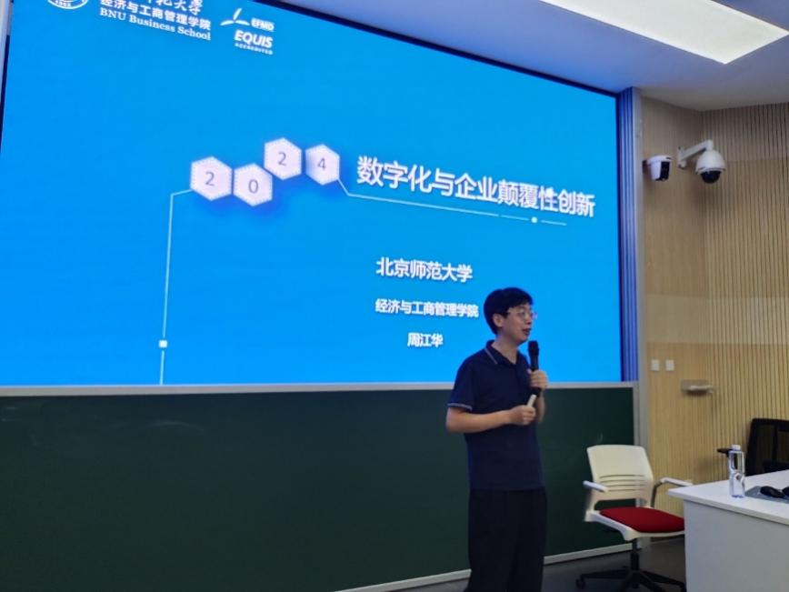 2024年6月1日晚,yl88858永利集团“数字经济与管理大讲堂”第33讲《数字化与企业颠覆性创新》在电子楼阶梯教室举办。本次讲座特邀yl88858永利集团教授、MBA教育中心主任、案例研究中心主任周江华主讲。MBA教育中心副主任李静主持讲座,130余位公司本、硕、博员工到场聆听。