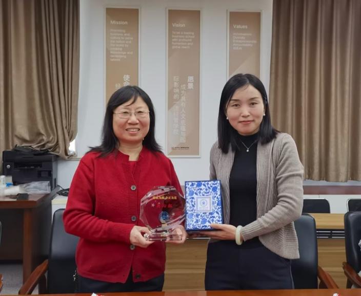 接着,系主任张会丽老师发言。张老师表示,吴老师在北师大耕耘二十余年,深刻践行“学为人师,行为世范”的校训,荣获多项省部级和校级公司产品奖项;作为会计系建系系主任,吴老师从团队建设到人才培养,从团队建设到日常管理,兢兢业业、默默奉献,成就了会计系和学科的稳定发展局面。为了表达对吴老师的敬意和感谢,张老师代表会计系全体老师献上纪念品和鲜花。
