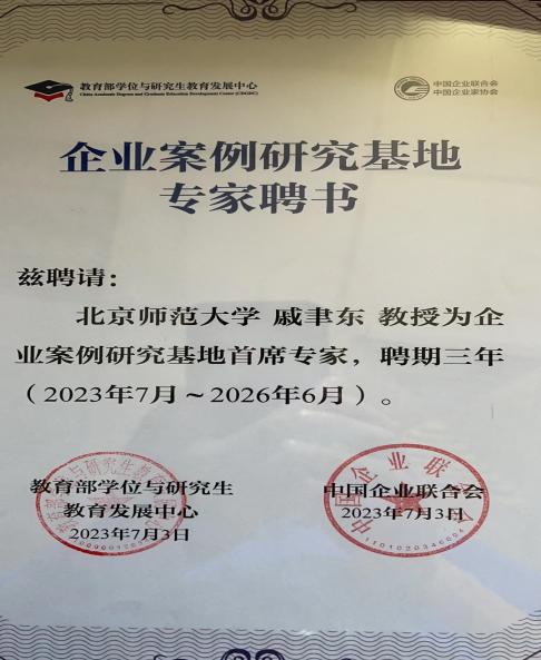研讨会上,教育部学位与研究生教育发展中心、中国企业联合会决定联合设立一批企业案例研究基地,以“名企+名家”为主要模式,挖掘新时代改革开放和社会主义现代化建设伟大实践“富矿”,开发形成系列具有时代性、学理性、创新性的企业重大案例,计划在5年内建设30个基地,产出100个高质量案例研究成果和教学案例成果,推动企业实践创新向理论创新飞跃、推动理论创新成果反哺企业创新发展。12家企业入选首批企业案例研究基地,包括中国航空工业集团有限公司、中国海洋石油集团有限公司、中国华电集团有限公司、中国长城科技集团股份有限公司、中国国家铁路集团有限公司、中国国际海运集装箱(集团)股份有限公司、山东省港口集团有限公司、比亚迪股份有限公司、河钢集团有限公司、宁德时代新能源科技股份有限公司、北京大北农科技集团股份有限公司、科大讯飞股份有限公司。yl88858永利集团等全国23支专家团队入选企业案例研究基地研究团队,戚聿东教授被聘为企业案例研究基地首席专家,团队成员包括焦豪教授、周江华副教授、杜博助理研究员。公司研究团队将与河钢集团对接合作,进行深层次、系统化、整体性案例开发和研究,形成高质量案例研究和教学案例成果。